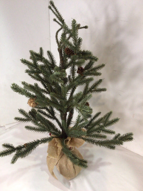 Christmas Green Burlap Tree Pinecones Holiday Item