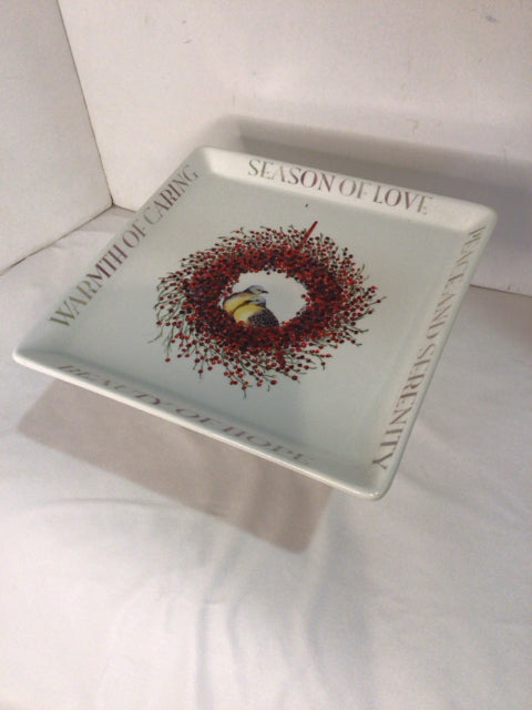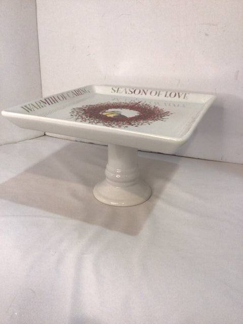 Creative Co-op Cake Plate White/Red Ceramic Wreath Pedestal Holiday Item