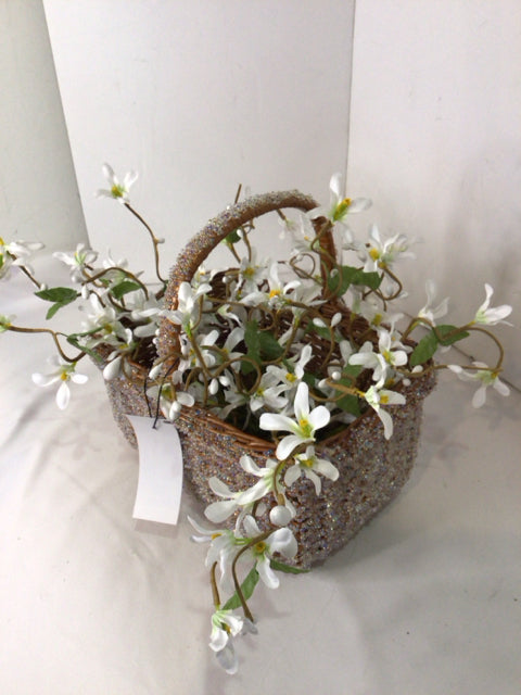 White In Basket Faux Flowers