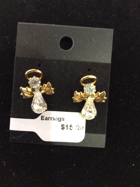 Gold Angel Rhinestone Earrings