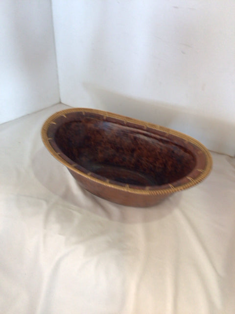 Carved Brown Wood Bowl
