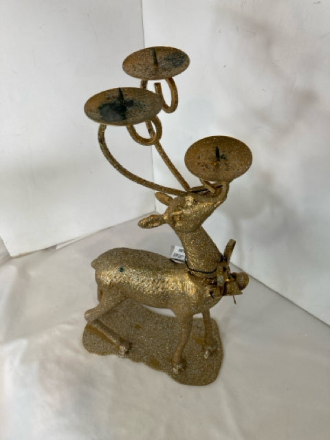 Christmas Gold Metal Glitter Candleabra Reindeer Holiday Item