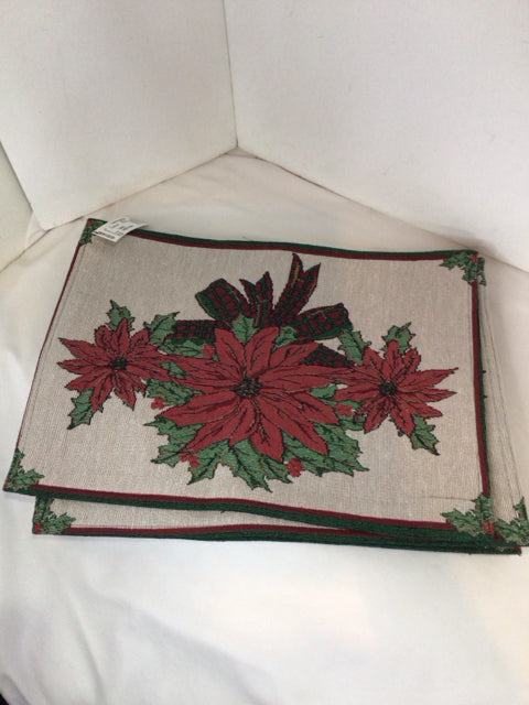 Christmas Red/Green Cotton Placemats Poinsettia Holiday Item
