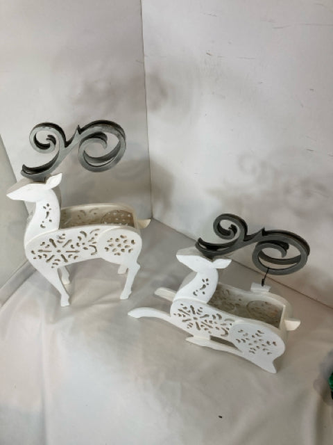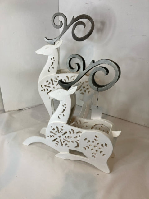 Christmas White/Silver Wood Pair Reindeer Holiday Item