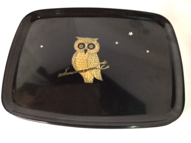 Couroc Set of 4 Black/Gold Plastic Owl Tray