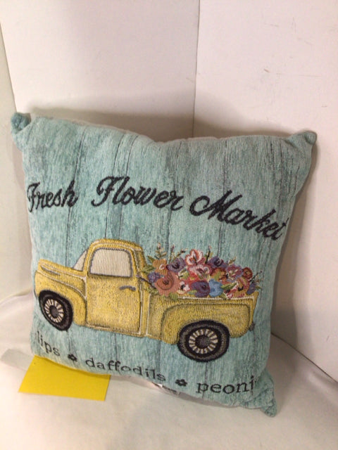 Green Chenille Car Words Pillow
