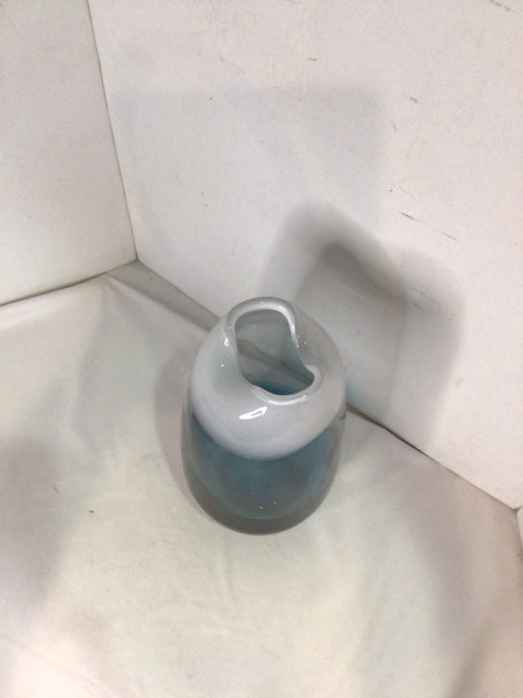 Hand Blown Turquoise/White Glass Vase
