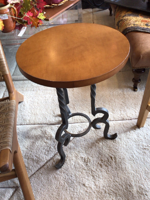 Lane Side Wrought Iron Wood Round Brown/black Table