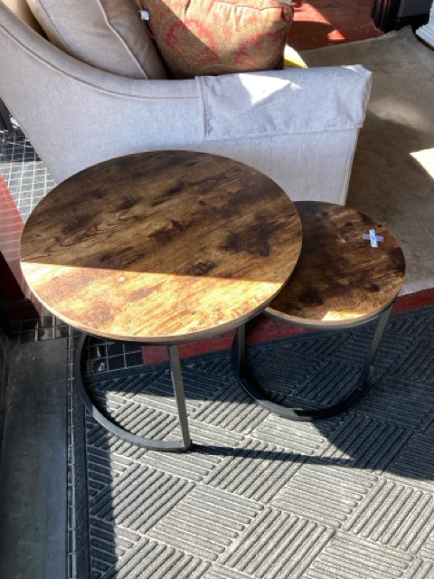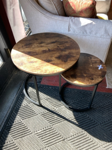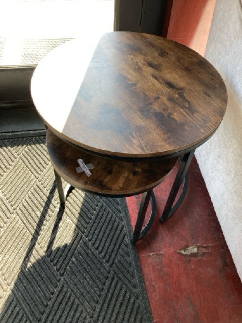 Nesting Wood/Metal Pair Round Brown/black Table