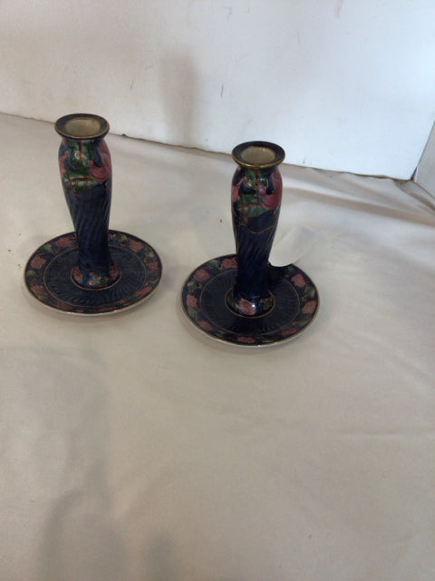Pair Blue/Pink Ceramic Floral Candle Holders