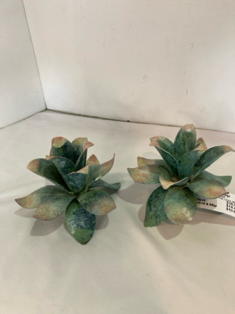 Pair Green Metal Floral Candle Sticks