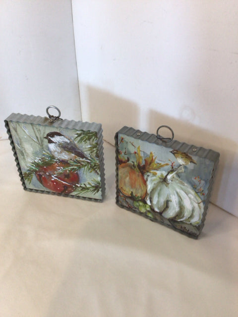 Pair Metal/Wood Bird Pumpkin Wall Decoration Art