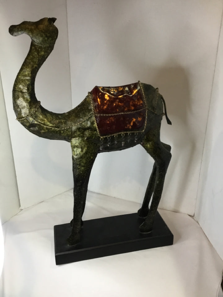PIER 1 Hand Crafted Green/Black Metal Camel Sculpture
