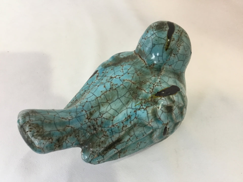 Rustic Turquoise Ceramic Bird Crackle Figurine