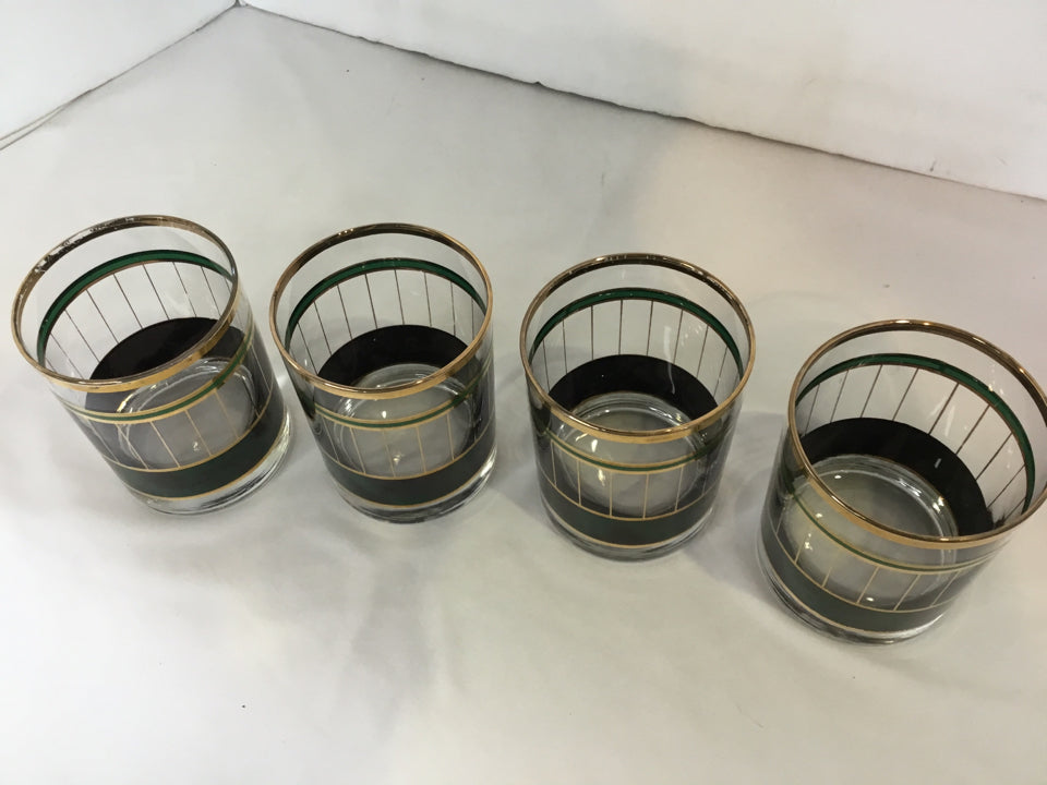 Set of 4 Green/Gold Glass Glasses