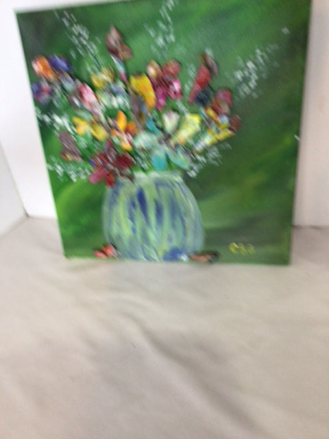 Signed Multi-Color Acrylic Flowers In Vase Stretch Canvas Art