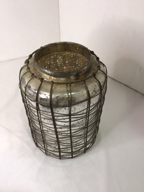 Silver Mercury Glass Wire Hurricane Candle Holder