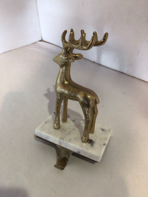 Stocking Hanger Gold/White Metal/Marble Reindeer Holiday Item