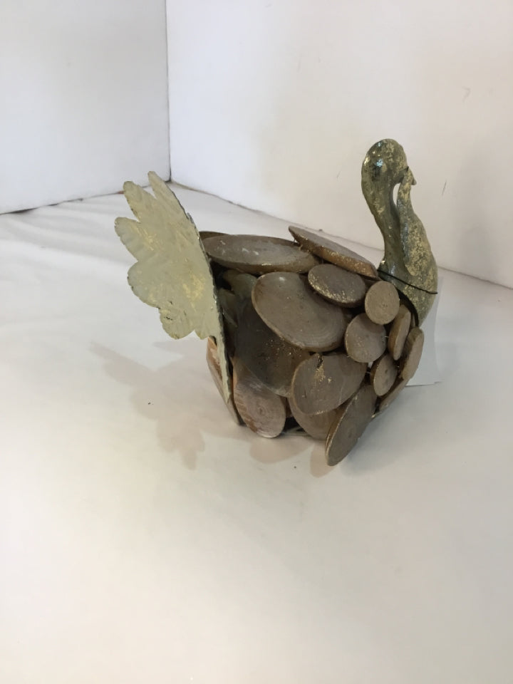 Thanksgiving Natural/Gray Wood/Metal Turkey Statue