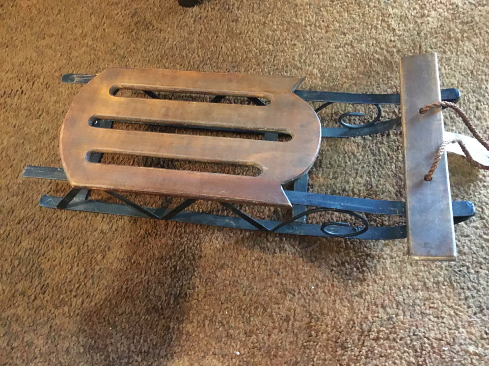 Vintage Brown Wood/Metal Sled Holiday Item