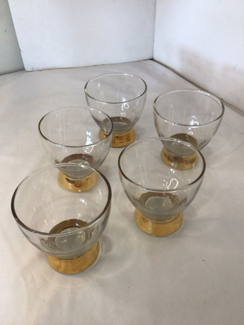 Vintage Set of 5 Clear/Gold Glass Cocktails Glasses