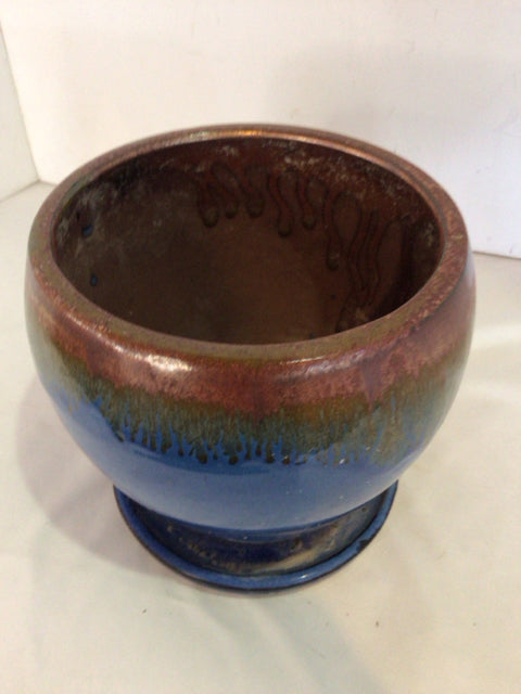 Blue/Tan Ceramic Planter
