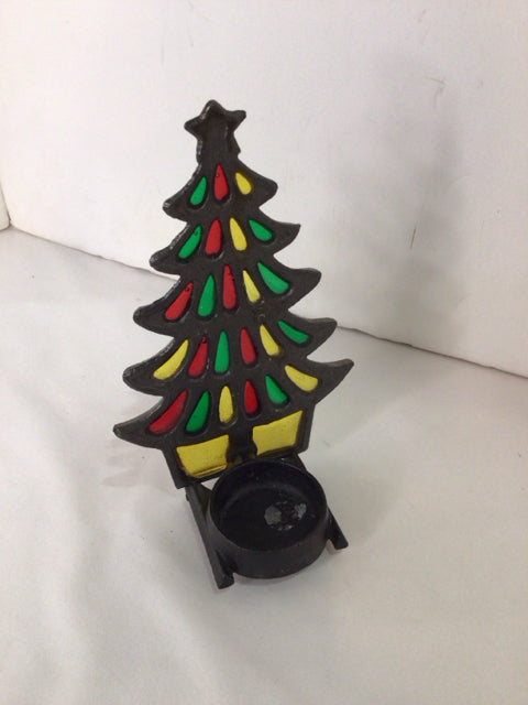 Candle Holder Multi-Color Metal/Glass Christmas Tree Holiday Item