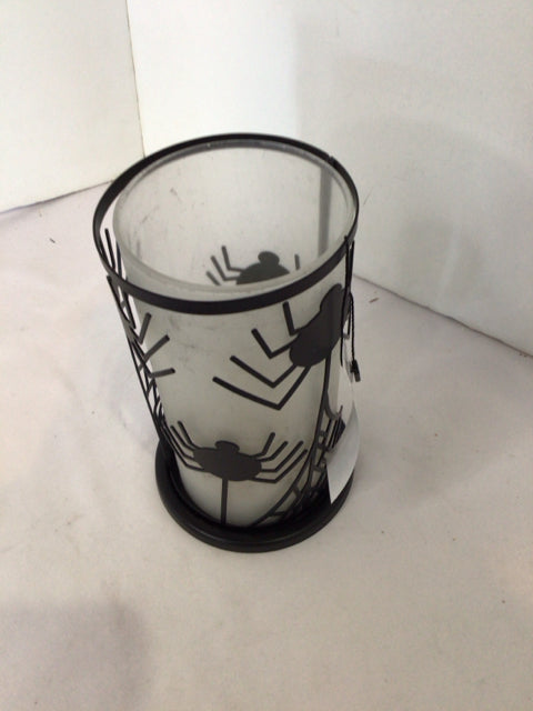 Halloween White/Black Metal/Glass Candle Holder Spider Holiday Item