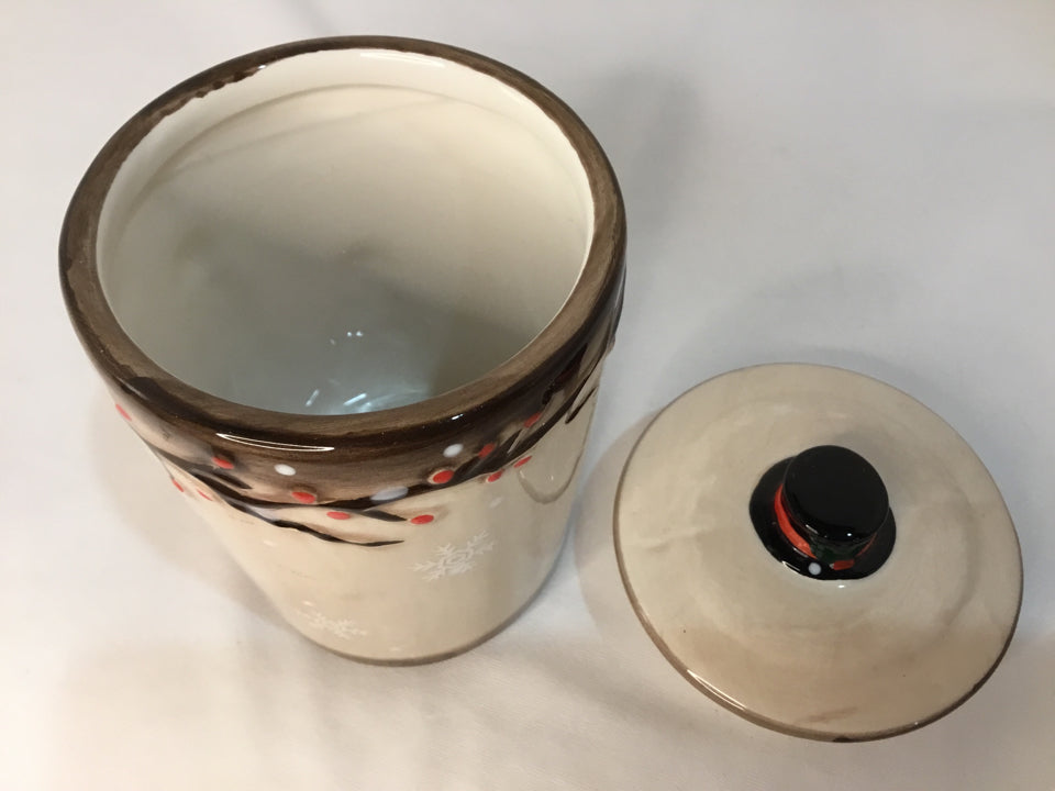Jar Tan/Red Ceramic Snowman Holiday Item