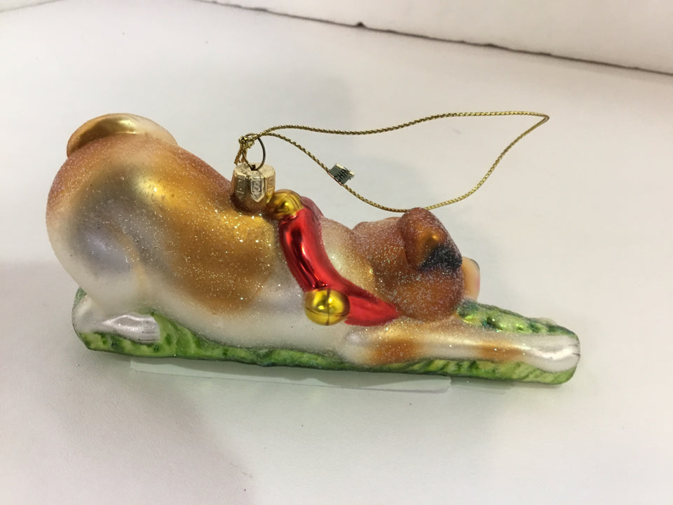Ornament Brown/White Glass Dog Holiday Item