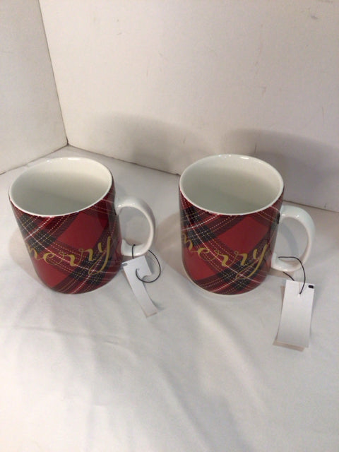 PIER 1 Mug Red/white Ceramic Set of 2 Holiday Item