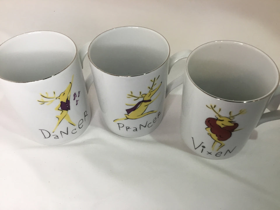 Pottery Barn Mug White Reindeer Set of 3 Holiday Item