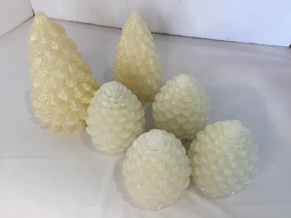 Set of 6 White Wax Pine Cone Trees Holiday Item