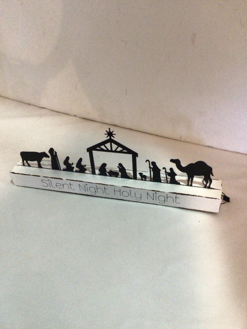 Sign White/Black Wood Nativity Holiday Item