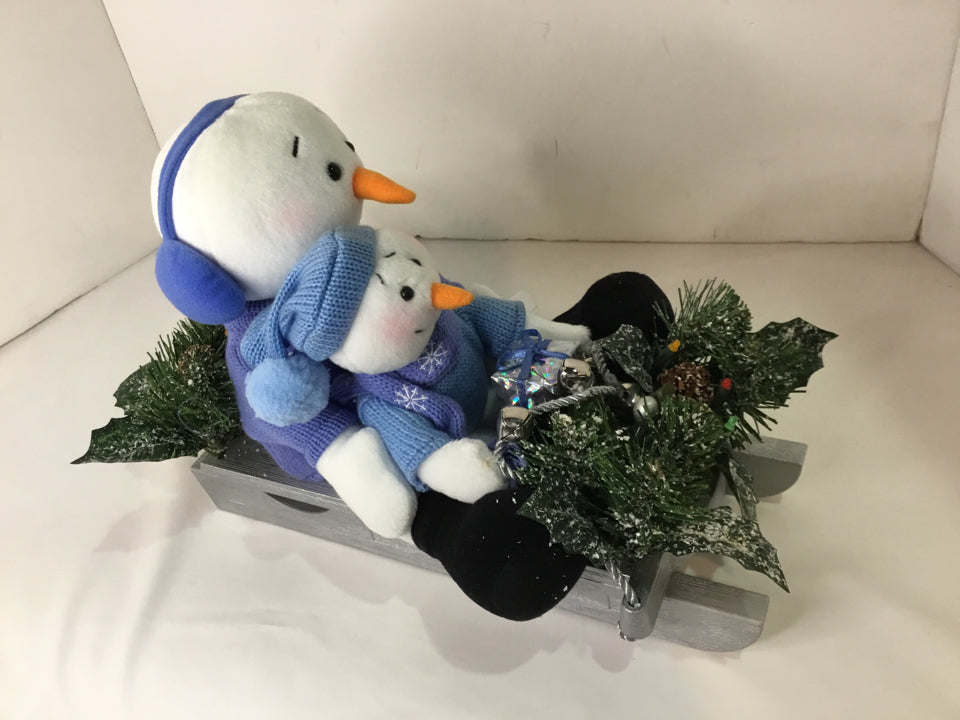 Silver/Blue Sweater Snowman Sled Holiday Item