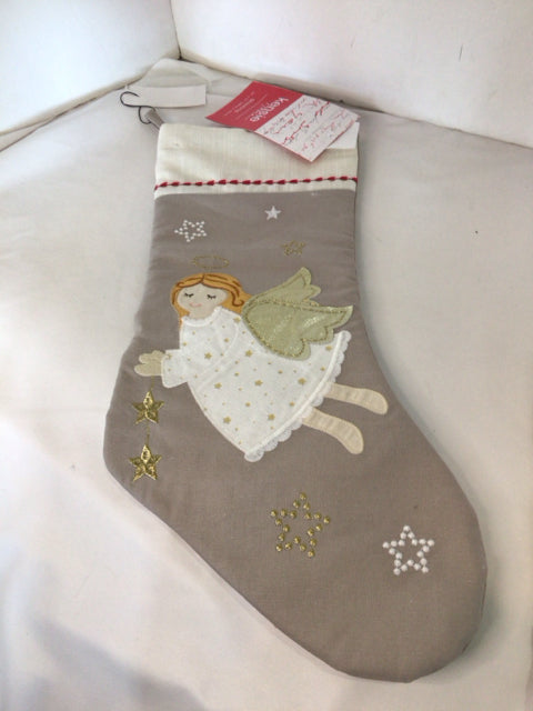 Stocking Tan/White Cotton Angel Holiday Item