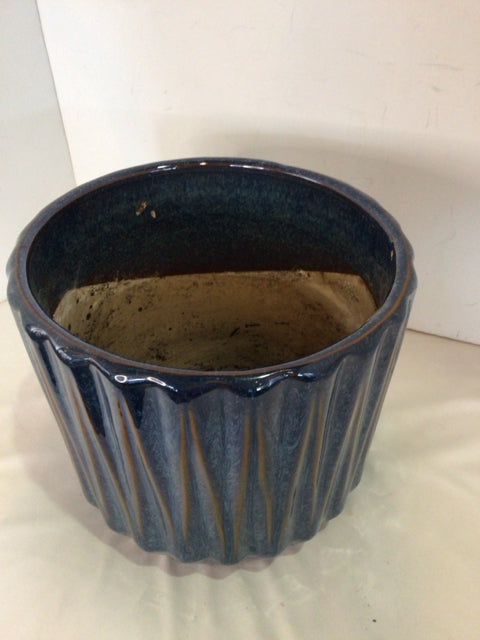 Blue Terracotta Ribbed Planter