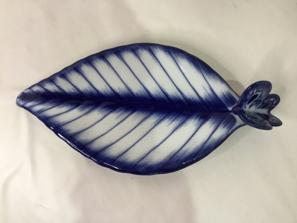 Blue/White Ceramic Leaf Plate