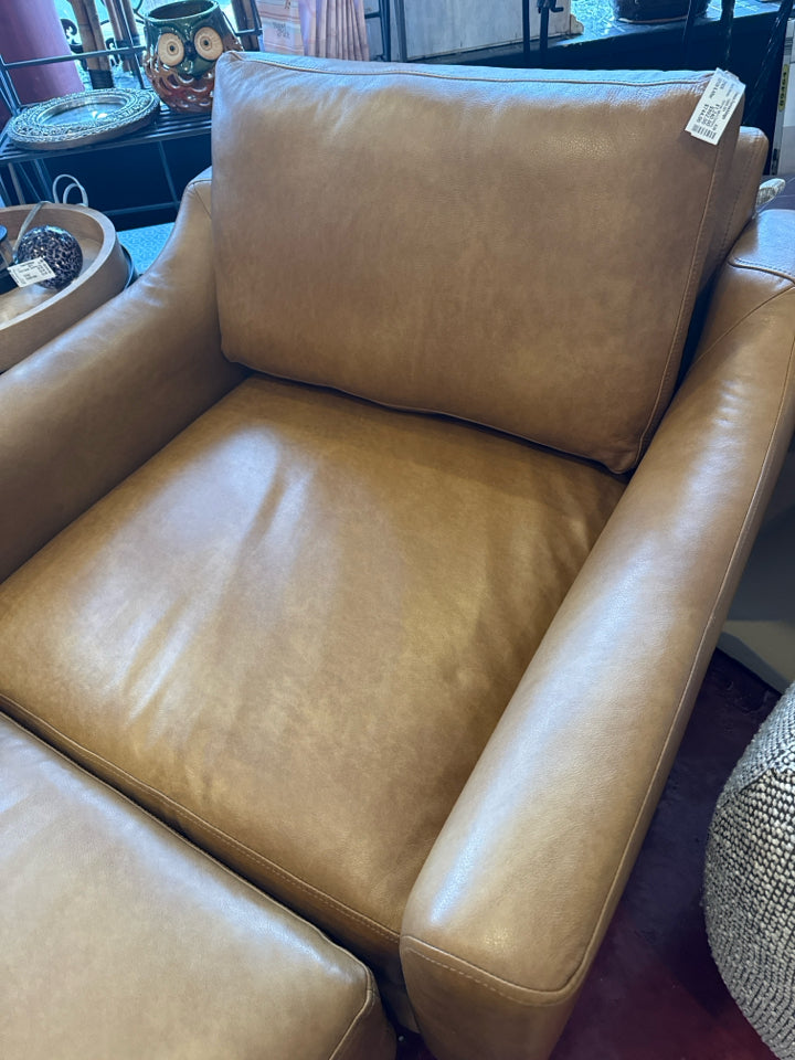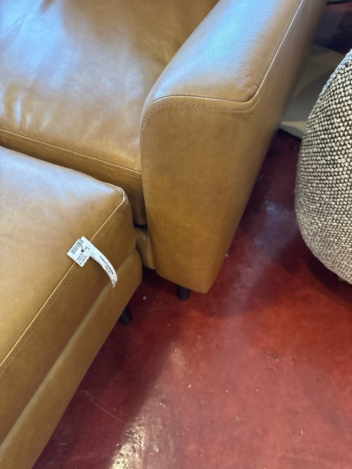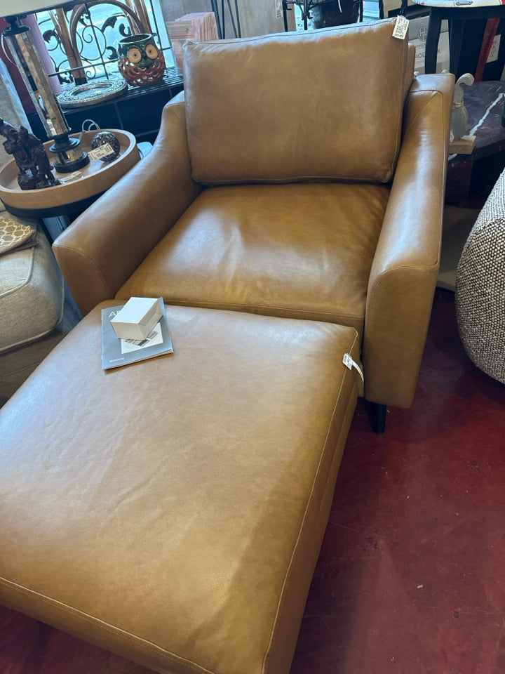 Burrow Mid-Century Leather 2 Piece Tobacco Chair & Ottoman AGNT235F