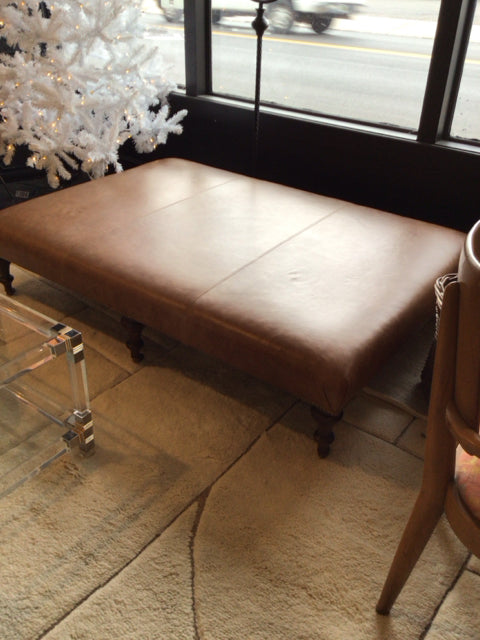 Century Coffee Brown Leather NailHead FootStool/Ottoman