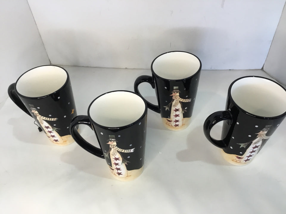 Certified Int. Mug Set White/Black Ceramic Snowman Set of 4 Holiday Item