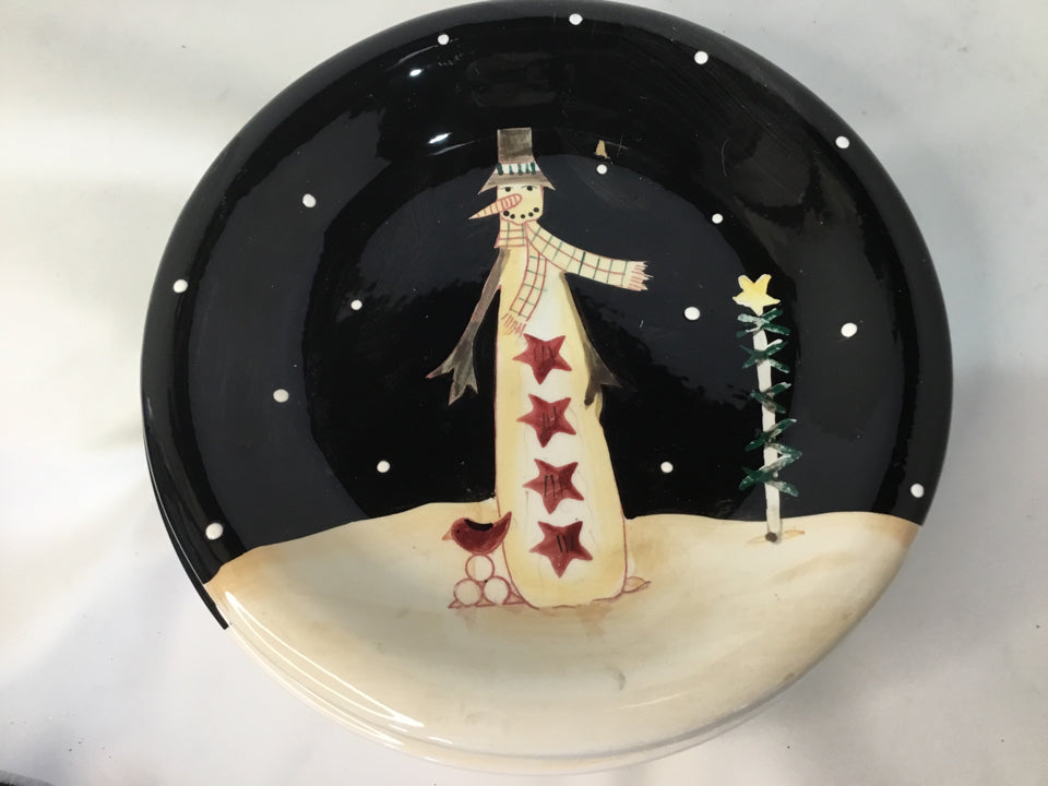 Certified Int. Plate set White/Black Ceramic Snowman Set of 4 Holiday Item