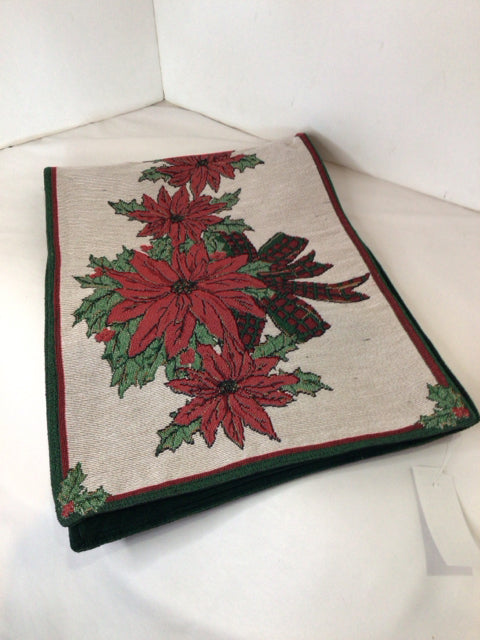 Christmas Red/Green Cotton Table runner Poinsettia Holiday Item