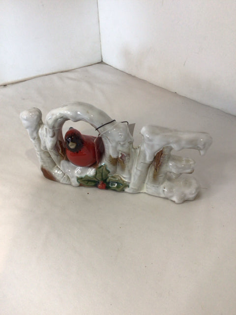 Christmas White/Red Ceramic Love Cardinal Holiday Item