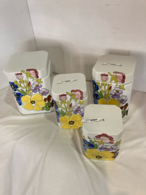 Cossa Retro White/Multi Porcelain Floral Set of 4 Canister Set