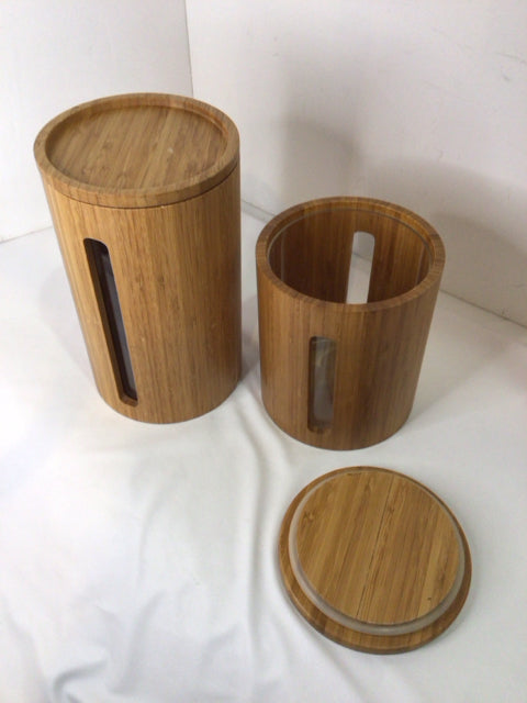 Crate & Barrel Pair Brown Bamboo Round Canister Set