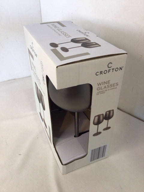 Crofton Pair Gray Stainless Steel Wine Glasses