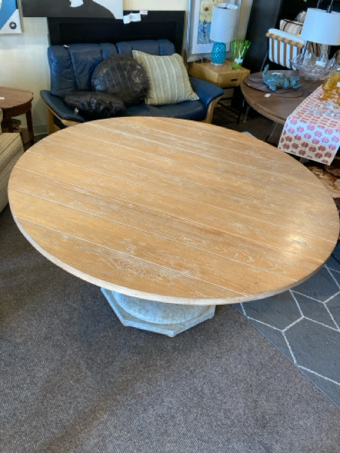 Hickory Chair Dinner Wood Round Pedestal Gray/Tan Table