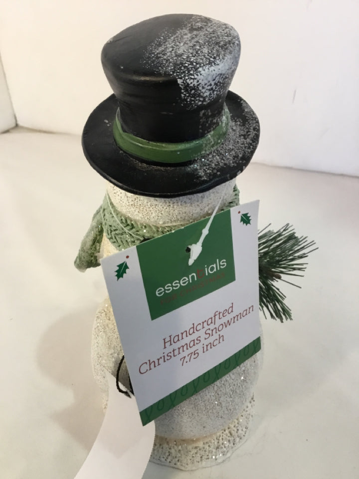 Figurine White/Green Resin Snowman Holiday Item