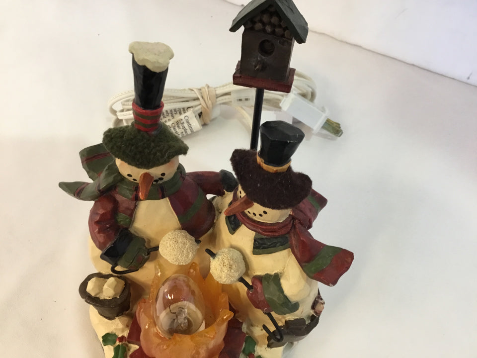 Figurine White/Red Resin Snowmen Light up Holiday Item